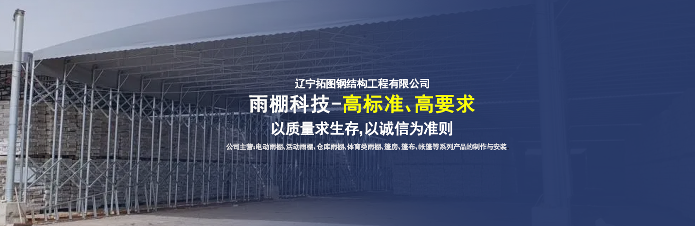 遼寧拓圖鋼結構工程有限公司是一家專業從事推拉篷設計、制作、安裝、使用、維修的綜合性公司。公司主營:電動雨棚、活動雨棚、倉庫雨棚、體育類雨棚、篷房、篷布、帳篷等系列產品的制作與安裝?! ?nbsp; 遼寧拓圖鋼結構工程有限公司堅持以市場為導向,以科技創新為動力,以質量求生存,以誠信為準則,倡導求實、進取、創新的企業精神。“科學的管理、嚴謹的設計、 的制作安裝、嚴格的質量檢測、良好的后期服務成就企業的信譽,為您提供優質服務?! ?nbsp; 遼寧拓圖鋼結構工程有限公司傾力于開發應用三維空間結構與新材料的結合,將廣告藝術視覺表現形式與張力膜材科學的結合,推出多彩推拉蓬,依靠先進的科學技術,將推拉蓬建筑表現形式無限延伸,立志走在建筑科學的前沿,引導建筑時尚潮流,我們的目標是使推拉蓬建筑在中國發展壯大?! ?nbsp; 遼寧拓圖鋼結構工程有限公司憑著極強的事業熱情和豐富的專業經驗以“勤勉進取、銳意創新、至誠至信”的精神使公司得到迅速健康發展,業務范圍遍及全國??茖W的管理、嚴謹的設計、高標準的制作安裝流程,嚴格把控產品質量,熱誠的售后服務是企業競爭力的源泉?! ?nbsp; 遼寧拓圖鋼結構工程有限公司人愿以最誠摯的態度,歡迎廣大客戶的蒞臨與溝通!愿為市場提供優...